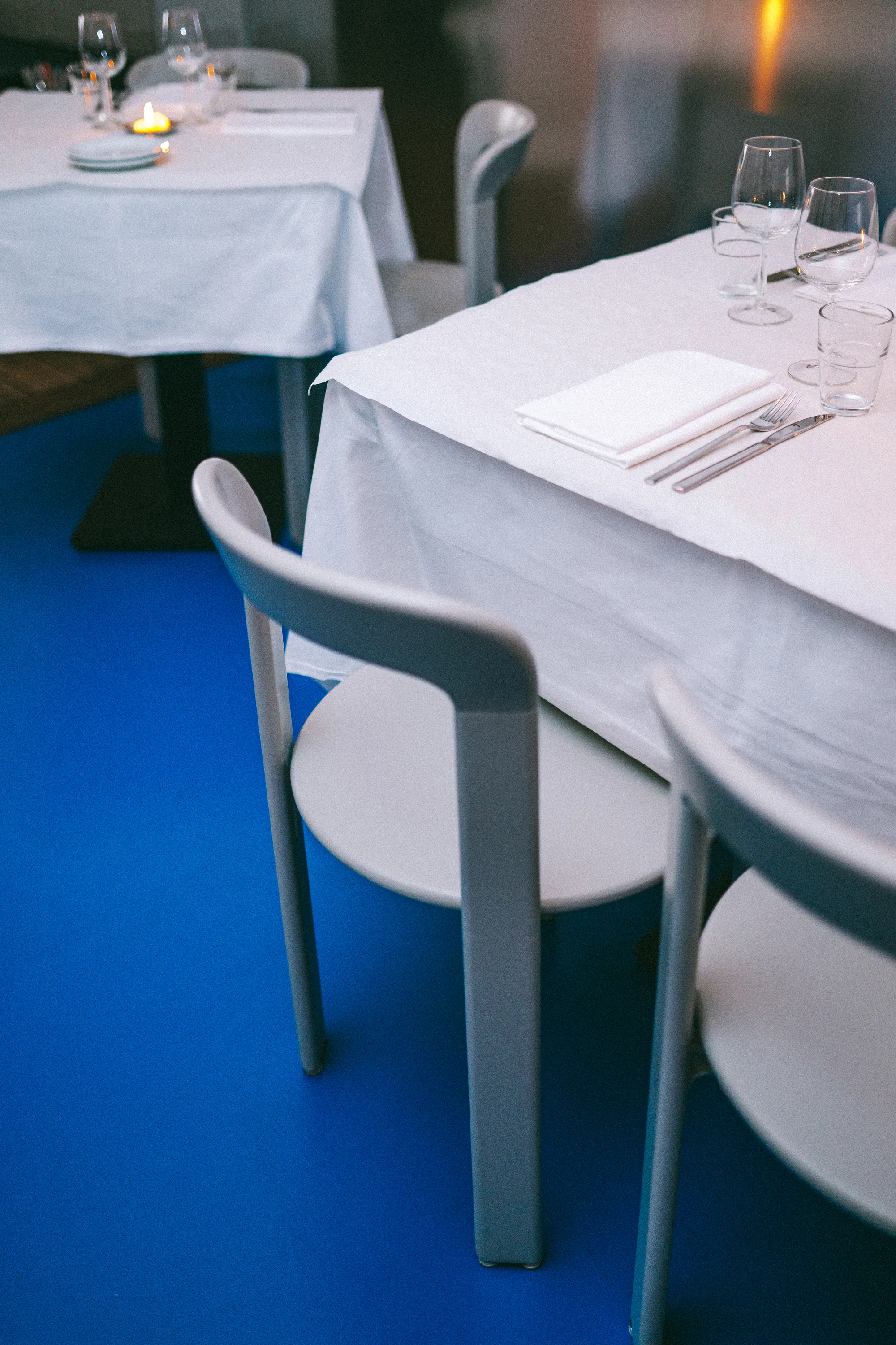 Interior design and project management for Café Klein, located in a 1930s building on a lively street in the centre of Nijmegen. Inspired by the visual world of French artist Yves Klein, the concept reinterprets the atmosphere of a modern bistro, balancing an approachable café setting with the refinement of fine dining and a menu centred around French-inspired dishes and natural wines.