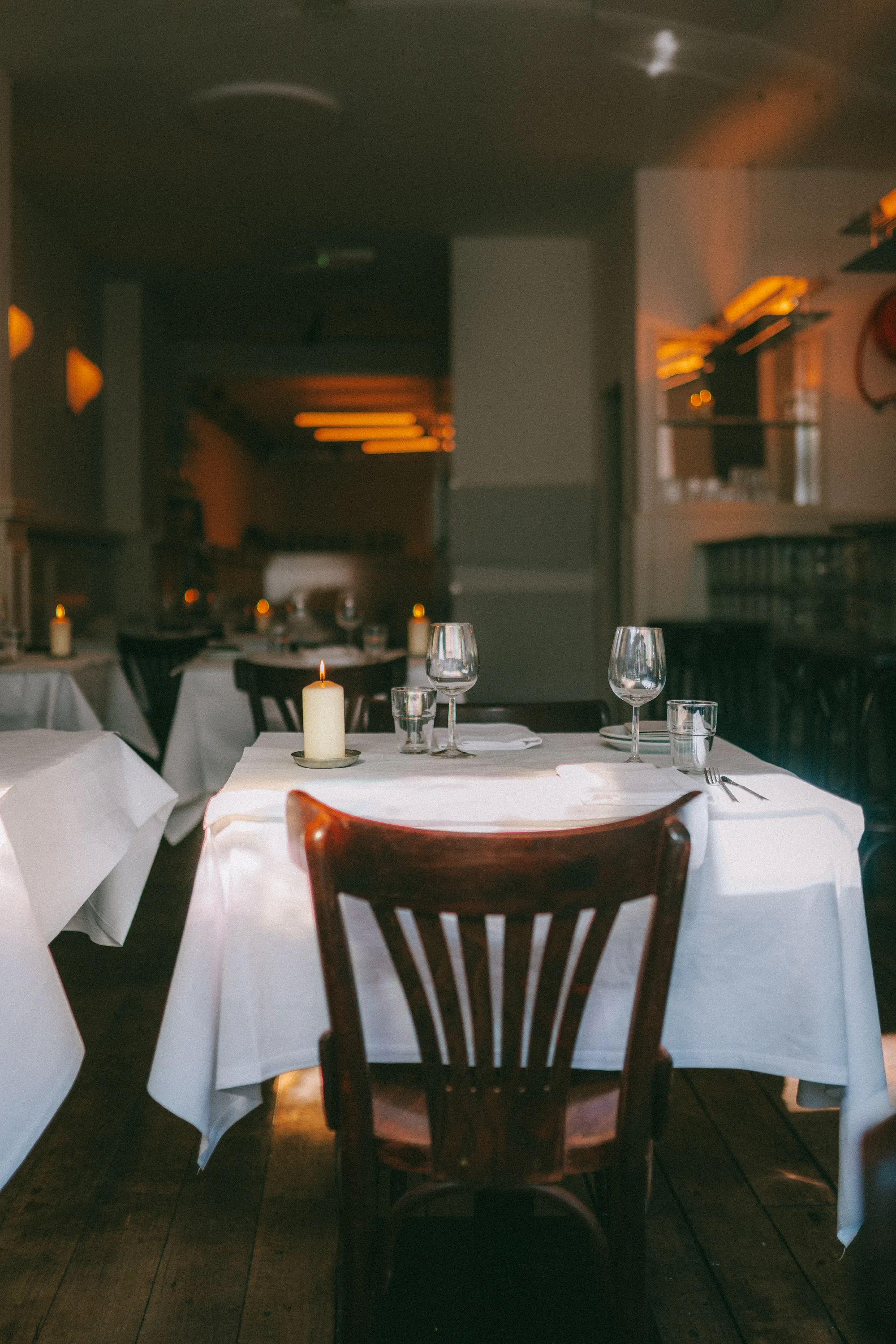 The interior combines laser-cut stainless steel furniture, custom lighting and upcycled classics, creating a layered and characterful space. Materials such as glass bricks, brushed stainless steel, mirror glass and stained solid wood form a palette that bridges classic craftsmanship with contemporary clarity, giving the bistro a bold yet familiar identity.